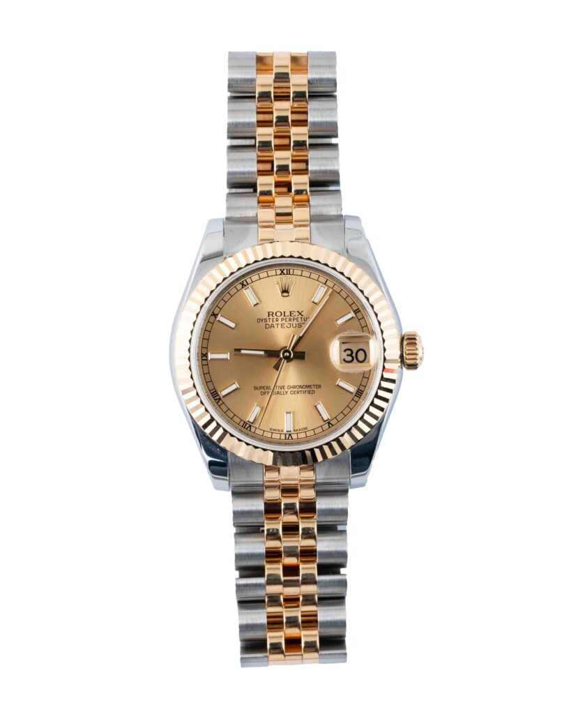 brand: Rolex Reference: 178273 Model: Datejust case MATERIAL: Steel & Yellow Gold strap: Bracelet case Size (MM): 31mm Dial colour: Champagne Bezel: Yellow Gold Condition: Excellent Box papers : Paperwork/box