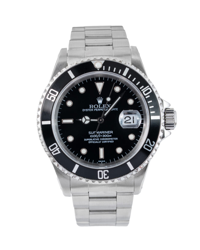 brand: Rolex Reference: 16610 Model: Submariner case MATERIAL: Steel strap: Bracelet case Size (MM): 40mm Dial colour: Black Bezel: Steel Year: 01/1999 Condition: Excellent Box papers : Paperwork/box