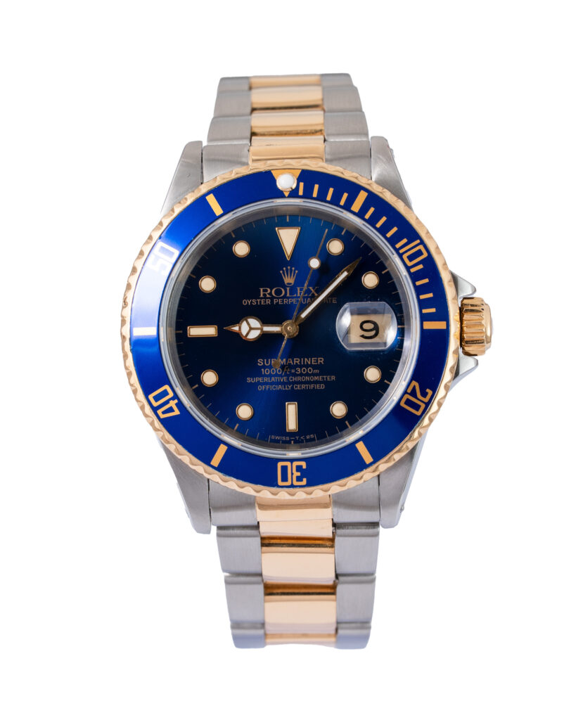 brand: Rolex Reference: 116613 Model: Submariner case MATERIAL: Steel & Yellow Gold strap: Bracelet case Size (MM): 40mm Dial colour: Blue Bezel: Steel Year: 11/1991 Condition: Excellent Box papers : Box