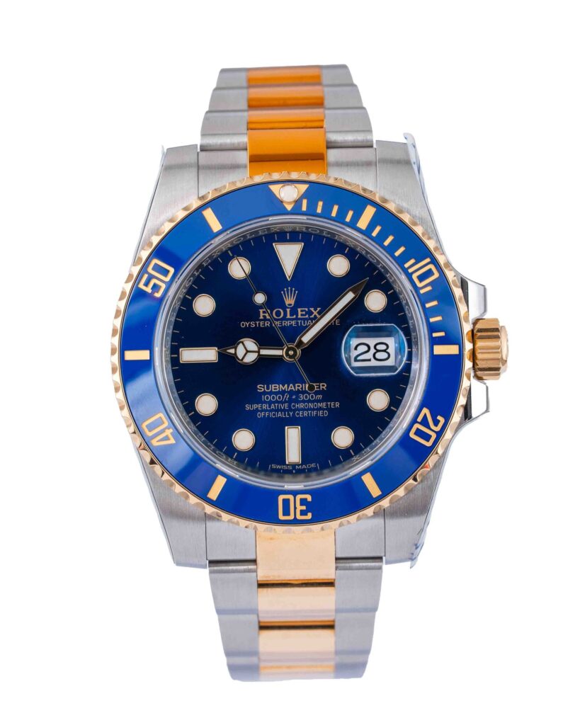 brand: Rolex Reference: 116613LB Model: Submariner case MATERIAL: Steel & Yellow Gold strap: Bracelet case Size (MM): 40mm Dial colour: Blue Bezel: Ceramic Year: 07/2017 Condition: Excellent Box papers : Paperwork/box