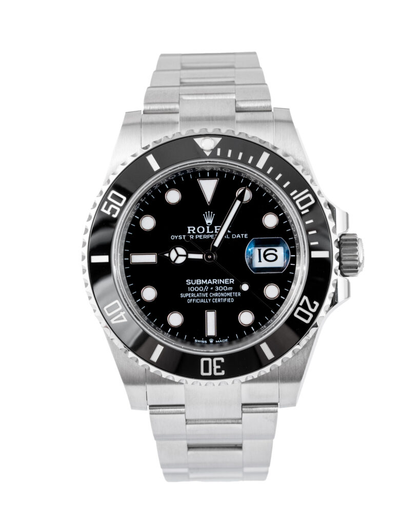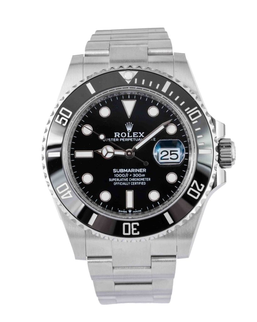 brand: Rolex Reference: 126610LN Model: Submariner case MATERIAL: Steel strap: Bracelet case Size (MM): 41mm Dial colour: Black Bezel: Ceramic Year: 04/2024 Condition: Excellent Box papers : Paperwork/box