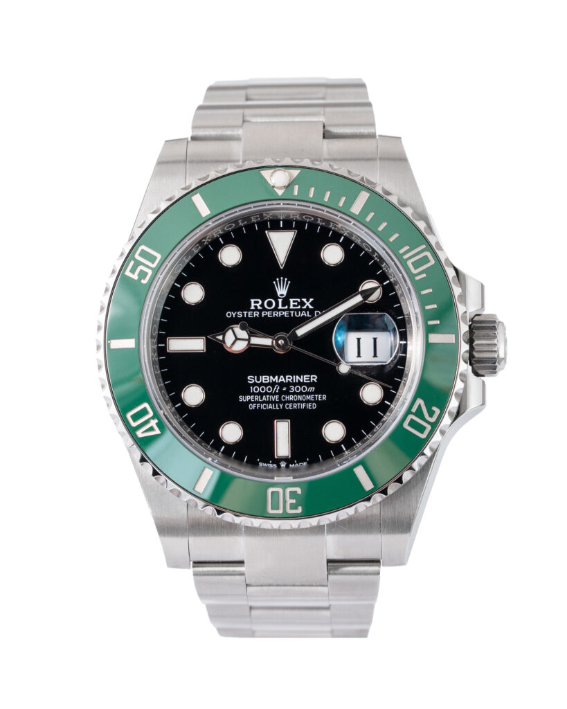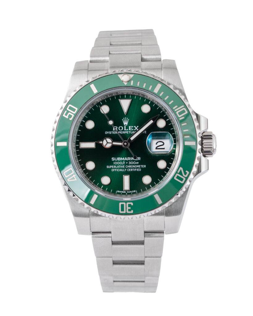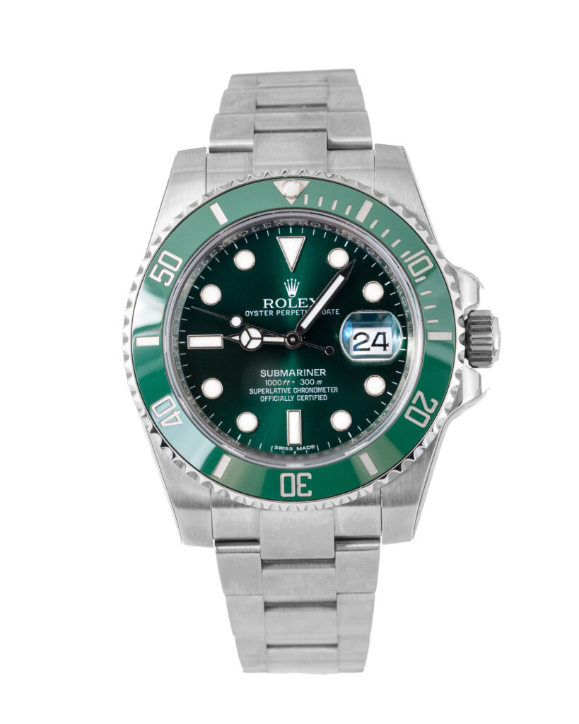brand: Rolex Reference: 116610LV Model: Submariner case MATERIAL: Steel strap: Bracelet case Size (MM): 40mm Dial colour: Green Bezel: Ceramic Year: 10/2015 Condition: Excellent Box papers : Paperwork/box
