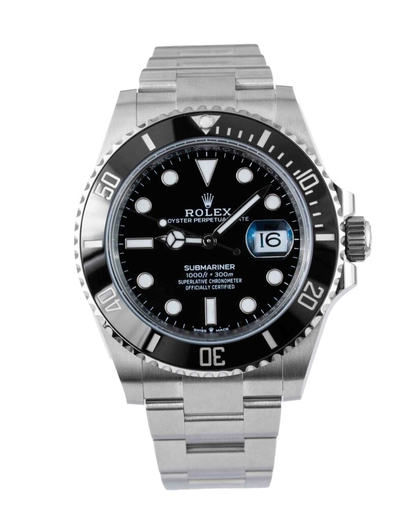 brand: Rolex Reference: 124060 Model: Submariner case MATERIAL: Steel strap: Bracelet case Size (MM): 41mm Dial colour: Black Bezel: Ceramic Year: 11/2021 Condition: Unworn Box papers : Paperwork/box