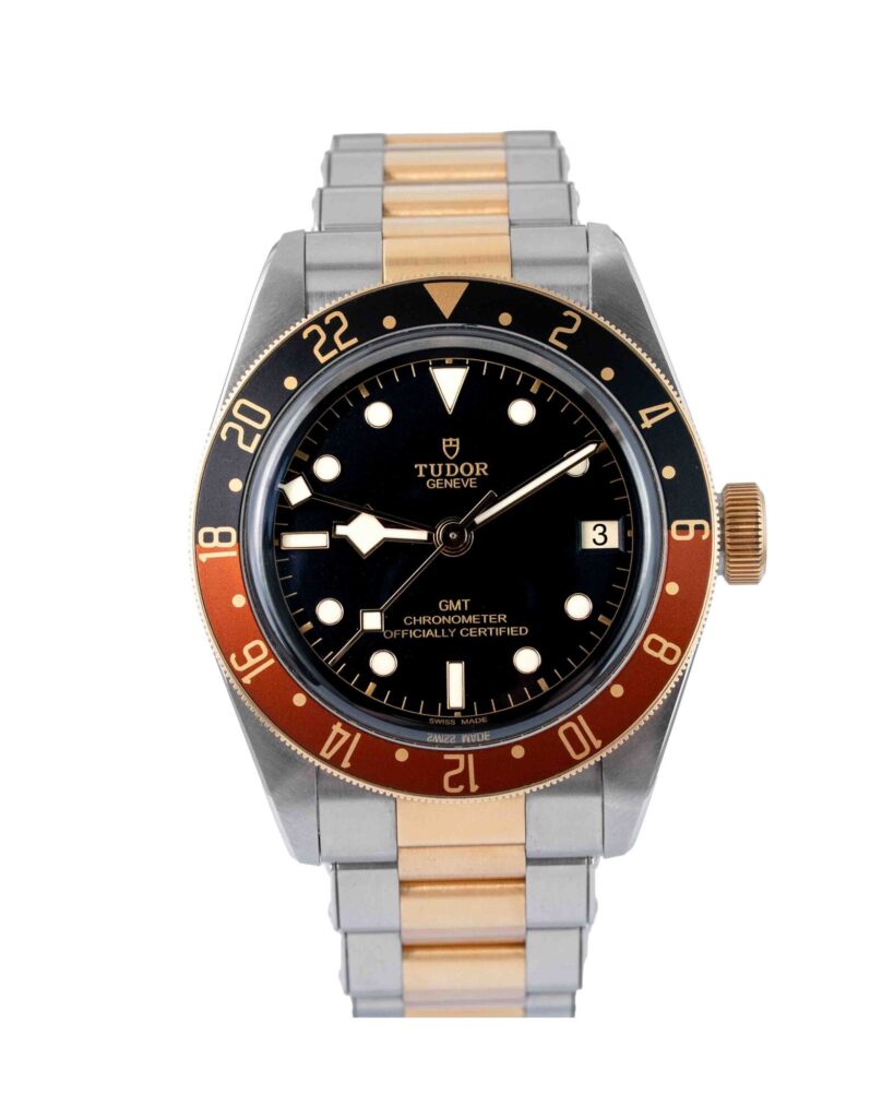 brand: Tudor Reference: 79833MN Model: Black Bay GMT case MATERIAL: Steel & Yellow Gold strap: Bracelet case Size (MM): 41mm Dial colour: Black Bezel: Aluminium Year: 03/2023 Condition: Excellent Box papers : Paperwork/box