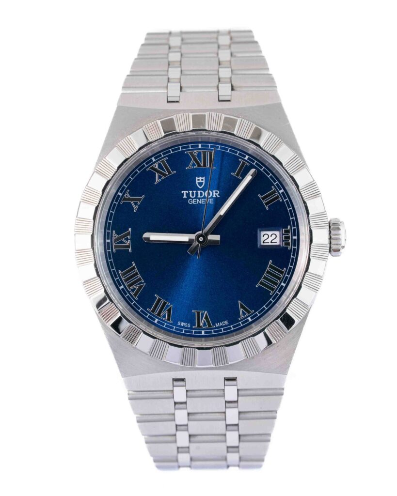 brand: Tudor Reference: 28500 Model: Royal case MATERIAL: Steel strap: Bracelet case Size (MM): 38mm Dial colour: Blue Bezel: Steel Year: 02/2025 Condition: Excellent Box papers : Paperwork/box