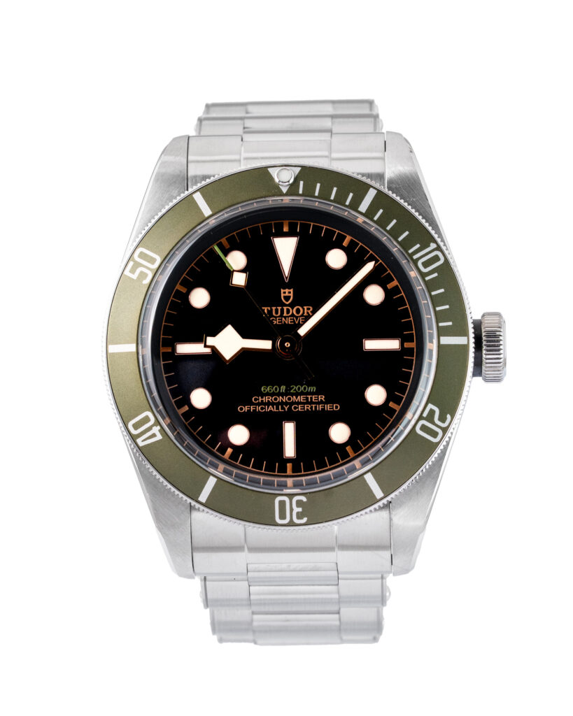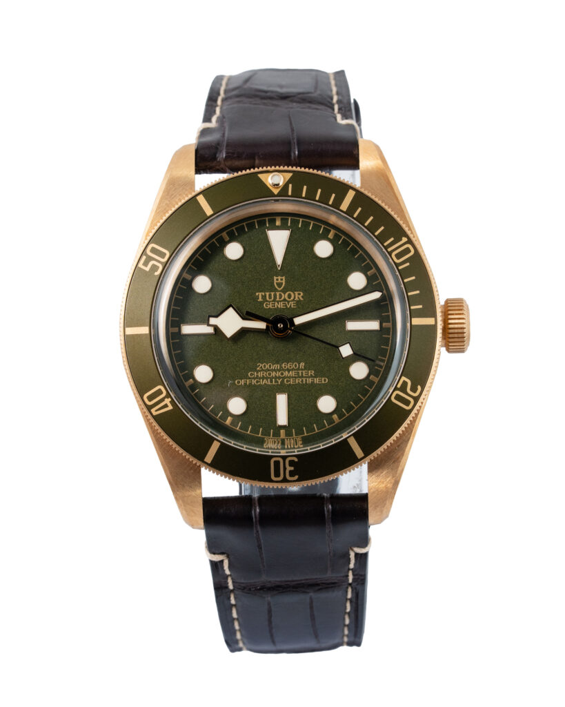 brand: Tudor Reference: 79018V Model: Black Bay case MATERIAL: Rose Gold strap: Leather case Size (MM): 39mm Dial colour: Green Bezel: Rose Gold Year: 01/2021 Condition: Unworn Box papers : Paperwork/box